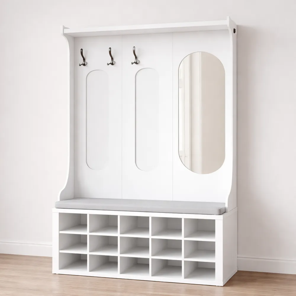 Meuble d'entrée avec étagères et porte-manteaux ajustables
