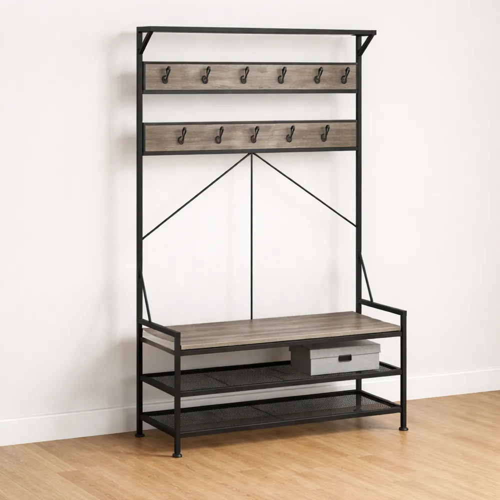 Vestiaire 4 en 1 avec étagères et crochets, meuble d'entrée industriel