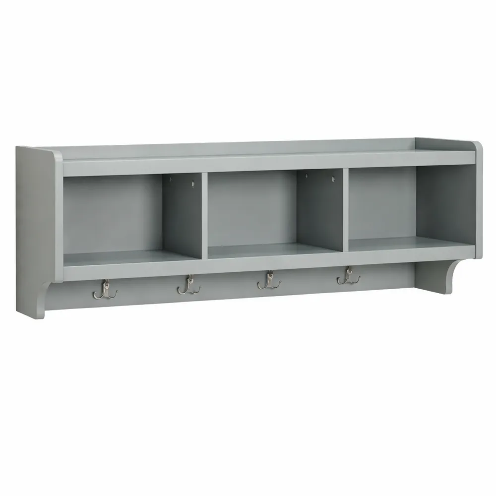 Étagère murale avec compartiments et crochets doubles, 100x25x35 cm, gris