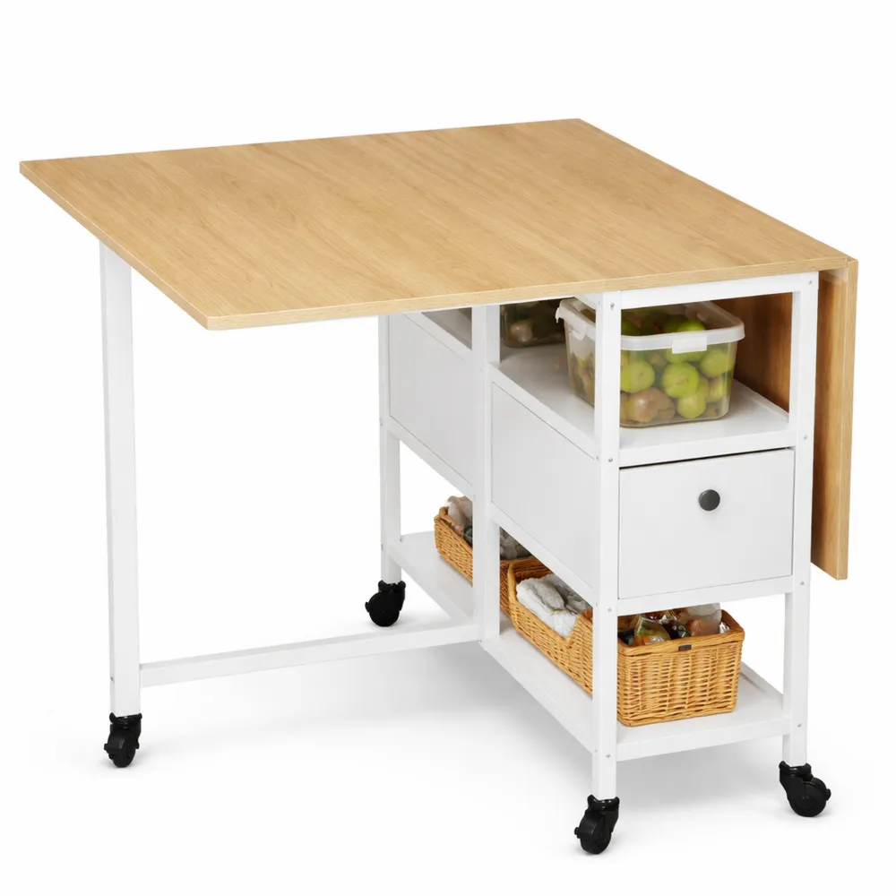 Table pliante mobile avec roulettes et rangements intégrés pour cuisine