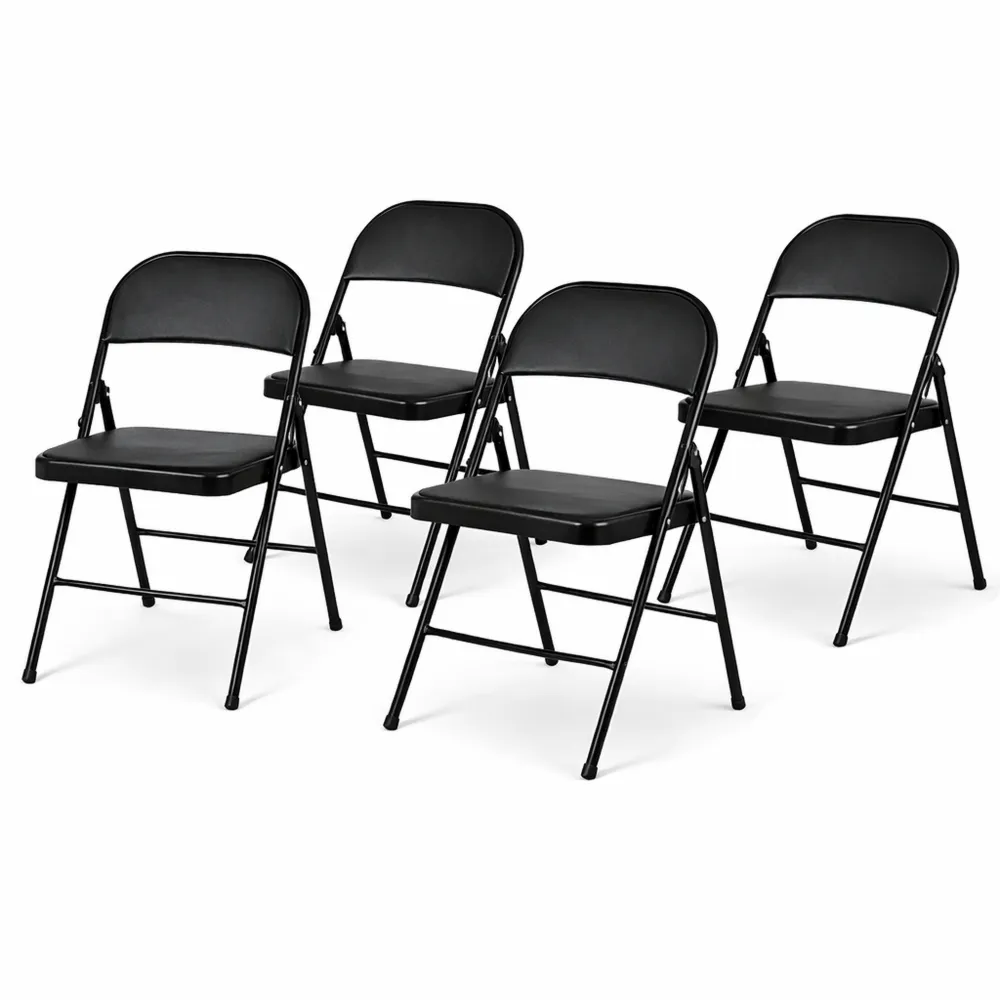 Ensemble de 4 chaises pliantes avec coussin en cuir synthétique et cadre en acier noir