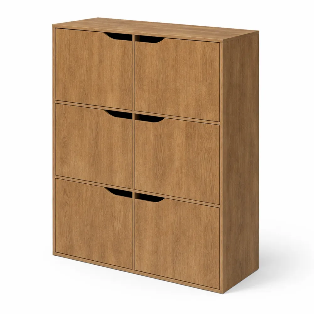 Étagère de Rangement à 6 Cases avec Portes – Effet Bois Naturel