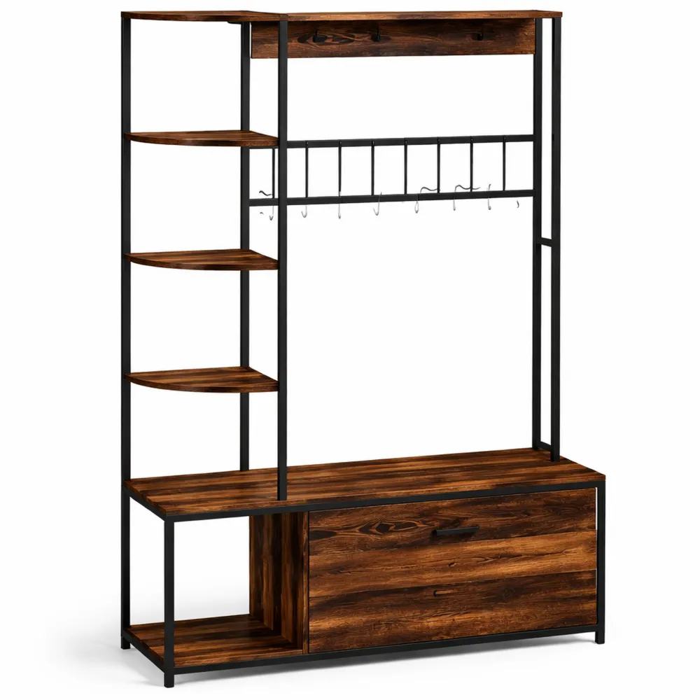 Vestiaire 4 en 1 avec étagères et crochets, meuble d'entrée industriel